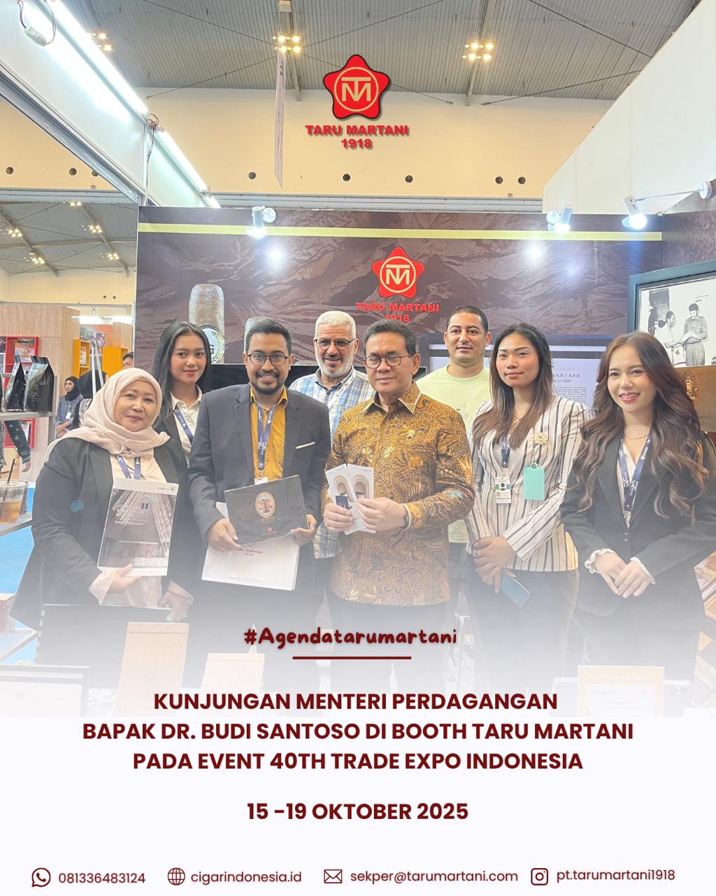 Sebuah kehormatan bagi PT Taru Martani mendapat kunjungan langsung dari Menteri Perdagangan RI, Bapak Dr. Budi Santoso, do booth kami dalam rangkaian acara 40th Trade Expo Indonesia (TEI) 2025 di ICE BSD City